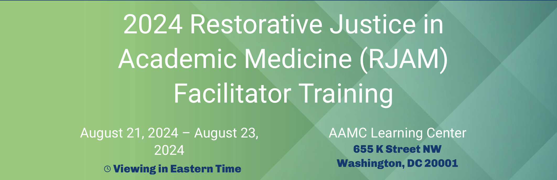 We are excited to announce that registration is now open for the RJAM Facilitator Training, a three-day, in-person event taking place in Washington, D.C.(AAMC headquarters) from Aug. 21-23, 2024. This training, in collaboration with the University of San Diego, Center for Restorative Justice, is designed to provide guidance on effectively incorporating Restorative Justice (RJ) practices to advance equity, diversity, and inclusion in academic medicine.