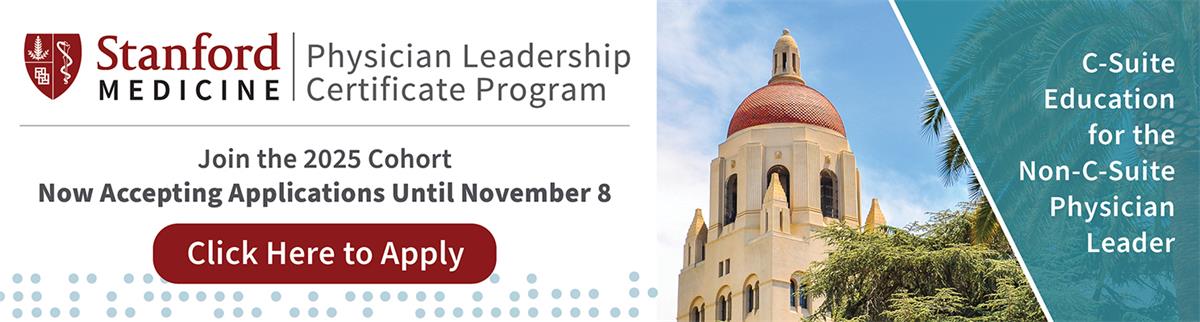 The Stanford Physician Leadership Certificate Program is a cohort-based foundational learning experience where you will discover how to learn and implement the most important leadership skills that will take your career as a physician to the next level of success.